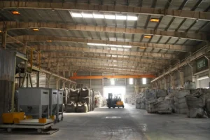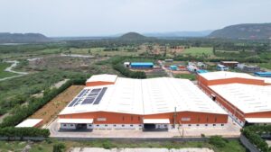 The sunlight harvesting system at various units, including Kalunga, uses transparent roofing sheets to illuminate raw material sheds naturally.